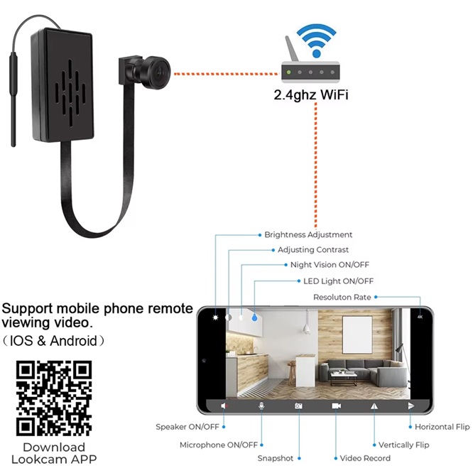 A wifi vizsga kamerával helyi, vagy mobiltelefonról megosztott wifi hálózatra csatlakozva online, távolról is nézhető folyamatos videóközvetítést hozhatunk létre. A videó közvetítést egy ingyenes applikációval a világ bármely interneteléréssel rendelkező pontjáról nézhetjük okostelefon/tablet segítségével. Az alkalmazásban lehetőség van a folyamatos élő videó rögzítésére, a videó folyam fényképezésére, a rögzített tartalmak utólagos visszanézésére, továbbítására.